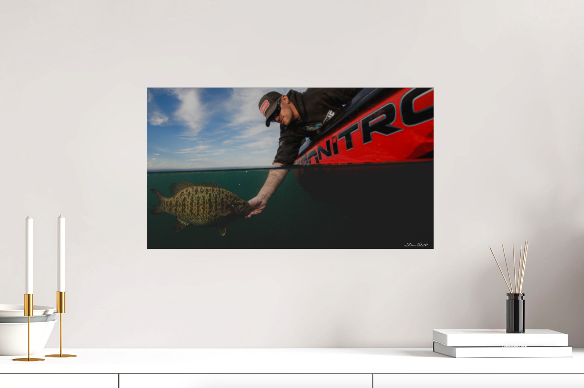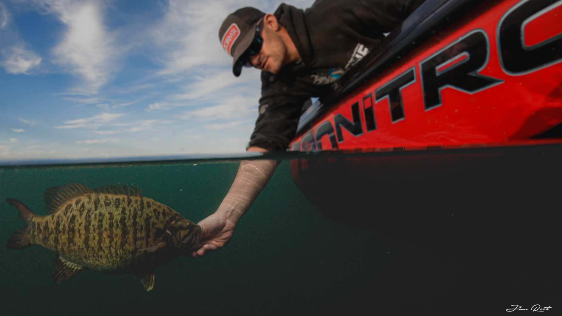 Smallmouth bass anglers are some of the best at practicing catch and release when it comes to trophy fish. This unique image offers an often unseen perspective of the fish and the angler moments before their forever farewell. The odds of them ever crossing paths again are virtually impossible. But for the angler, it's a moment that they will never forget. May you live to fight another day, my friend.
