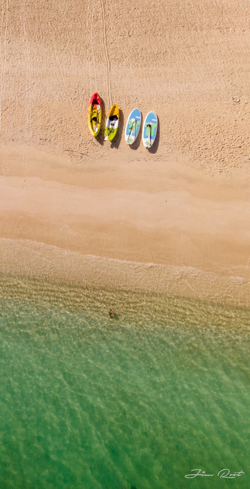 Many islands of the caribbean are host to strong trade winds that bring water a bit too rough to standup paddleboard. Grande Antigua/Barbuda is an exception to that. The tranquil bays are some of the best places to paddleboard that you'll find. I saw this early in the day, before the crowds would come. Before the laughter, and the footprints. Two kayaks, two paddleboards, one beach.