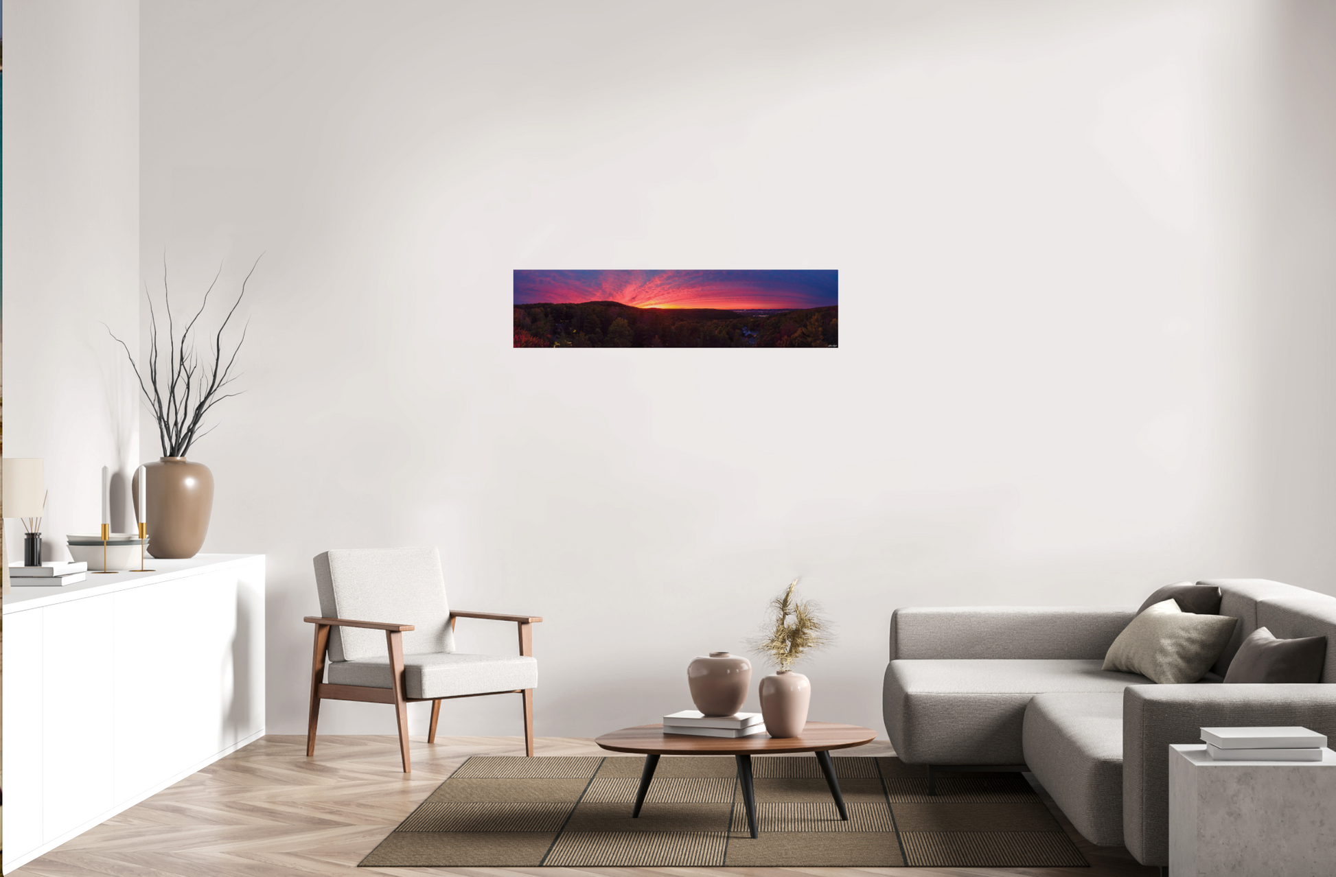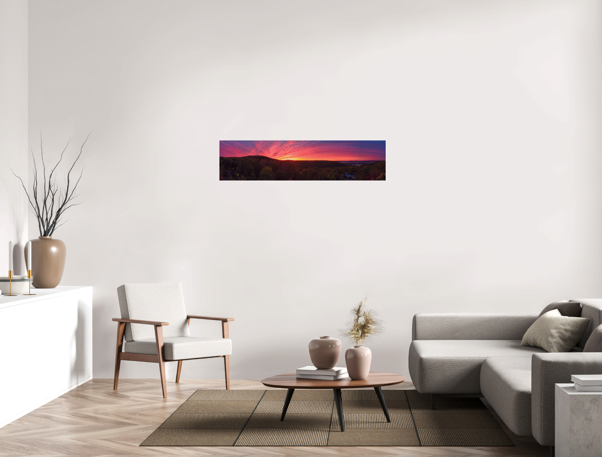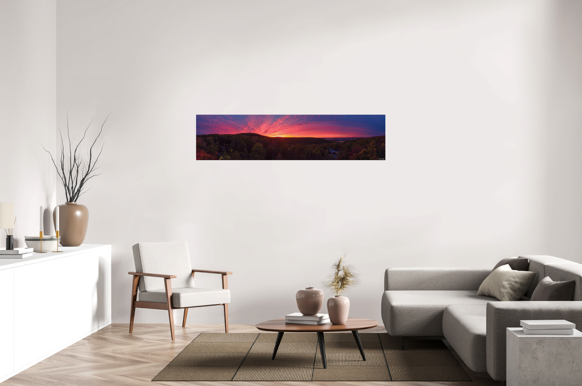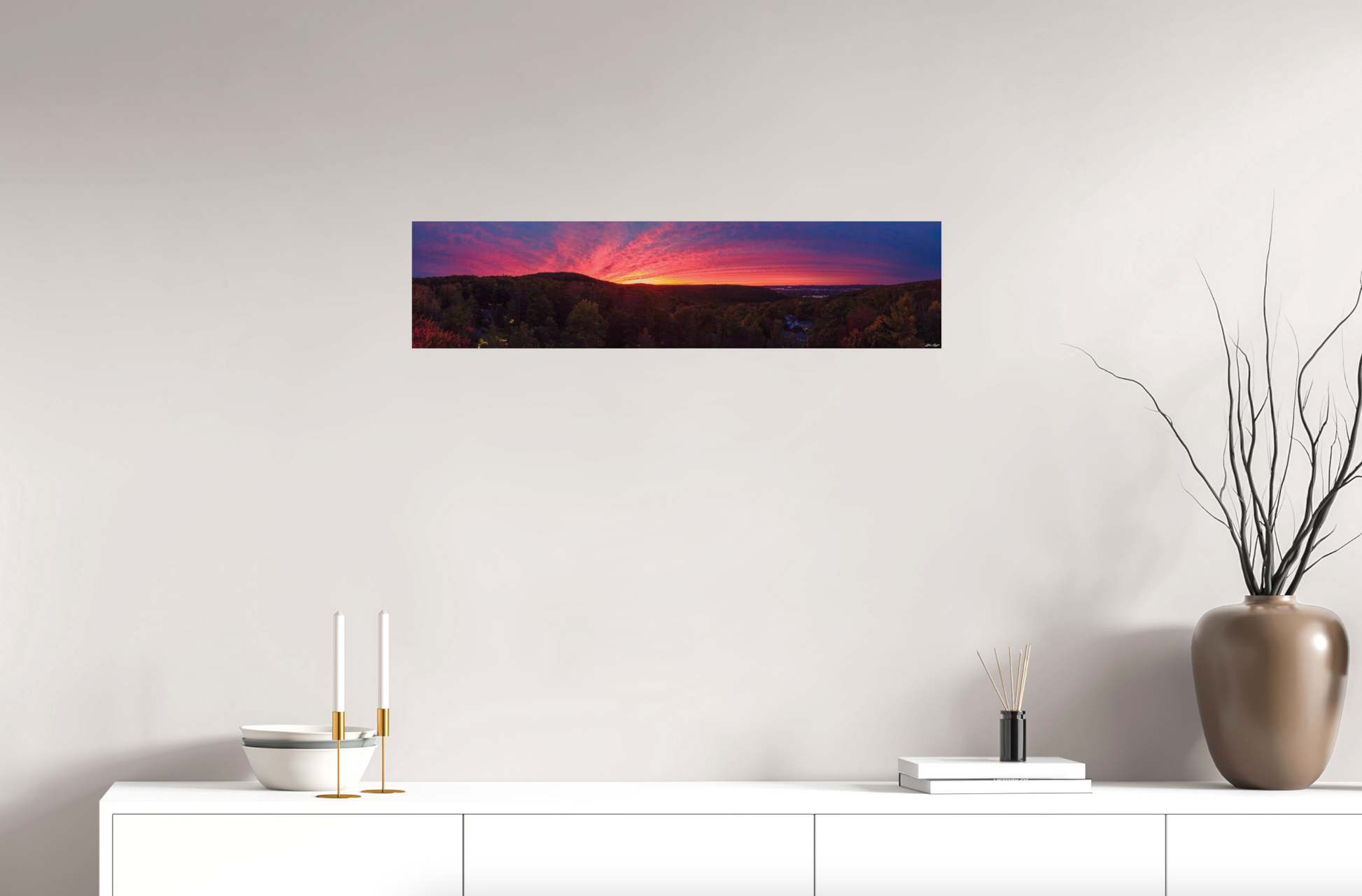 This spectacular sunset from South Mountain, Binghamton NY is absolutely heavenly. South Mountain is uniquely rural and rustic. Home to many deer, it is the prized location in the Southern Tier and especially Binghamton. You will not believe the pink and purple tones of light that are captured in this rare piece.